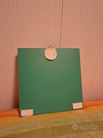 Piccolo specchio quadrato con decorazioni in fimo lungo il bordo. Con gancio per appenderlo a parete. Misure 15x15 cm