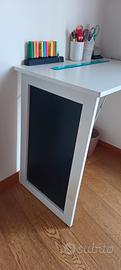 Delizioso e comodo, la parte a sinistra è formata da lavagna, il piano va fissato a parete ed è richiudibile. Adatto con piano di appoggio per ambiente cucina anche per mangiare per un a persona, oppure per la camera dei ragazzi dove studiare. Essendo richiudibile è adattissimo anche a piccoli ambienti