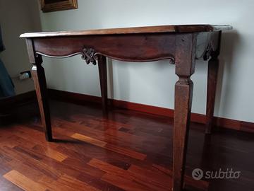 Uno splendido tavolo di misura contenuta, manifattura veneta del XVIII secolo, molto ben conservato, in legno di noce dalla tonalità calda, scolpito con piano sagomato. Gamba a tronco di piramide che ne dichiara il gusto di fine 1700. Nel restauro occorso alcuni anni fa sono stati mantenuti quei segni del legno che ne attestano l’età e l’usura, per evitarne l’effetto falsificante. Il tavolo può essere utilizzato anche come scrivania, porta collezioni, tavolo da centro, tavolo servitore o da gioco. Le misure contenute lo rendono ideale per spazi non necessariamente grandi. I segni d’usura o fori di vecchi tarli, fanno parte della bellezza del mobile antico.