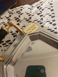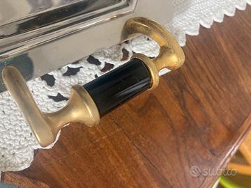 vassoio vintage Freddi in acciaio inossidabile 18/10 con finiture e manici placcati in oro 24 carati. Materiali: Acciaio inossidabile 18/10 e oro 24 carati. Stile: Vintage e decorativo. Utilizzo: Ideale come oggetto decorativo o per servire in occasioni speciali. Ottime cindizioni , mai utilizzato