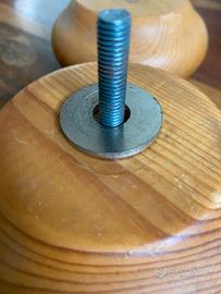 4 Piedini In legno massello utilizzati per letto basso (tipo Futon Japan) completo con viti doppio filetto , (Maschio /Femmina) , rondelle e bussole da inserire nella struttura che necessita.