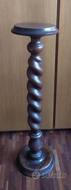 Elegante colonna piedistallo di legno con base tonda e fusto laccato.