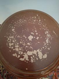 Piedistallo in legno,altezza 65 cm,diametro base su pavimento 30 cm,diametro base appoggio alta 25 cm.Presenti zone in cui la vernice è scrostata come da foto