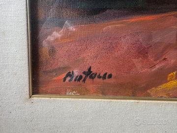 Dipinto olio su tela del maestro PIERO BERTACCO Piero Bertacco è un pittore italiano del XX secolo legato alla tradizione figurativa veneta, con una carriera internazionale e una produzione centrata su nature morte e paesaggi, influenzata da artisti importanti come Sironi. Formato: 50×70 cm Tecnica: olio, eccellente materia pittorica Stile: paesaggio espressivo, Colori: moderni e “forti” Firma coerente Mostre e riconoscimenti Espone a livello internazionale: Mosca (1961, su invito del governo sovietico) tournée negli Stati Uniti organizzata dall’American Federation of Arts (1962–63) Ginevra (1964) Amburgo (1967, con acquisizione museale) È considerato un artista che ha influenzato altri pittori, con una pittura di impronta post-impressionista Dati biografici essenziali Nascita: 30 novembre 1924 a San Donà di Piave Morte: 25 novembre 1984 Si dedica alla pittura fin da giovane e studia all’Accademia di Belle Arti. Formazione e influenze Allievo di artisti come Guido Cadorin e Bepi Galletti. Nel 1953 si trasferisce a Milano, dove entra in contatto con figure importanti come Mario Sironi e Spartaco Balestrieri . Attività artistica Prima mostra personale alla Galleria San Vidal di Venezia. Negli anni ’50 realizza soprattutto nature morte e paesaggi (spesso a olio su tela). Dal 1957 torna in Veneto e sperimenta anche la scultura .