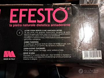 Nuova, usata una sola volta, confezione originale, pietra naturale dietetica antiaderente "EFESTO", per cucinare piatti di qualità di carne, pesce, verdura, senza condimenti, non si attaccano alla pietra, evitando cattivi odori.