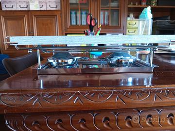 nuovo mai utilizzato, fornelletto da tavolo con pietra ollare per grigliare direttamente a tavola, dotato di due fornelletti