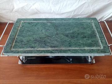 Pietra ollare in marmo da tavolo per la cottura dei cibi – marca Kaufgut – modello KAU065 – dimensioni 37x19 cm - corredata di 2 bruciatori ad alcool cromati, di supporto e vasca in acciaio INOX - usato una volta, quindi in ottime condizioni
