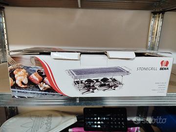 Vendo bellissima pietra lavica professionale completa di supporto in acciaio inox e 2 bruciatori. Ideale per cucinare carne, pesce e verdure direttamente a tavola senza grassi aggiunti.