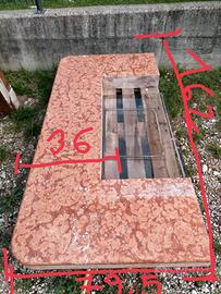 vendo pietra per camino in marmo rosso Verona a forma di u ,pezzo unico. Altezza 10,5 cm lunghezza 162 cm profondità 79,5 cm e larghezza 36cm. Usata per rivestimento camino interno. Ritiro a carico di chi acquista.