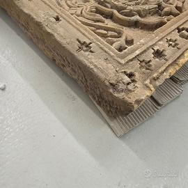 Arenaria rossastra scolpita a mano, di dimensioni 132x41cm, spessore 10cm, di origine indiana presumibilmente originaria di edifici storici e/o sacri indiani del periodo Moghul, datata probabilmente attorno alla fine del XVIII secolo - inizio XIX secolo. Peso approssimativo ca. 95kg