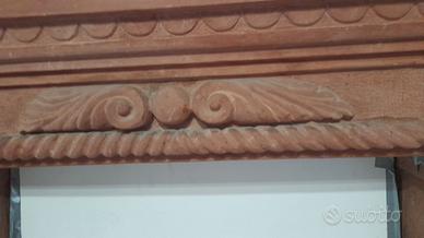 Disponibile a partire da fine giugno, pietra in trachite rossa per caminetto, realizzata a mano. la parte superiore circa m. 1.60, altezza circa 1.30.