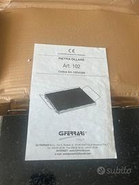 piastra in pietra ollare con telaio, ideale per cucinare in modo sano e uniforme grazie alle sue proprietà termiche. Materiale: Pietra ollare (steatite), una roccia metamorfica resistente. Utilizzo: Perfetta per grigliare carne, pesce e verdure direttamente a tavola. Caratteristiche: Superficie naturalmente antiaderente che non richiede l'aggiunta di grassi. Manutenzione: Si consiglia di pulirla solo con acqua e sale, evitando detersivi chimici. Usata una sola volta