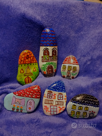 di "pietre casette" dipinte a mano da pittrice, una per una con cura e amore. Si possono usare come fermacarte, soprammobili e volendo possono essere inserite nel presepe come complemento decorativo.