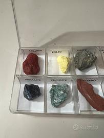 Vendo set di 10 pietre da collezione Cinabro Zolfo Pirite Cristallo di Rocca Antimonite Sodalite Fuchsite Diaspro Ametista Calcopirite