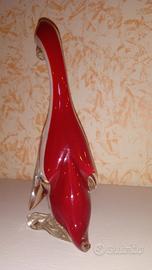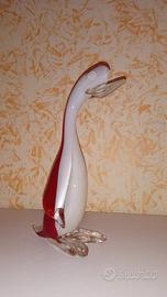 Scultura di un pinguino in vetro di Murano sui toni del rosso e del bianco. La scultura si presenta in perfette condizioni.
