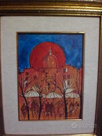 Opera, olio su tela 18x24, dei primi anni '90 del maestro Mario Pinizzotto "Tramonto a Trastevere". Sul retro dell'opera (vedi foto n.4) è presente l'autentica del Maestro. La tela è venduta corredata di una splendida cornice e di un certificato di autenticità della galleria di provenienza. Opera, olio su tela 18x24, dei primi anni '90 del maestro Mario Pinizzotto "Tramonto a Trastevere". Sul retro dell'opera (vedi foto n.3) è presente l'autentica del Maestro. La tela è venduta corredata da una splendida cornice omaggio e di un certificato di autenticità della galleria di provenienza.
