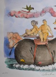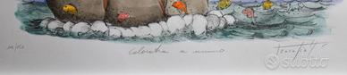 Pino Procopio Litografia "tutti al mare"acquerellata a mano tiratura di 130 esemplari il numero del foglio potrebbe variare. in perfette codizioni