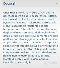 Perfetta per il pesce ma utile per tutti gli alimenti da grigliare, le sue grandi dimensioni e la sua presa sicura permettono di afferrare gli alimenti senza romperli (peperoni, pomodori, hamburger.....). Resistente alle alte temperature, non assorbe odori, non graffia piani antiaderenti. NUOVA!