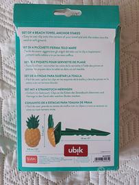 Set di 4 Pinze/Picchetti Ferma Telo Mare a forma di Ananas, marca Legami. Ti basta piantarli nella sabbia, pinzare i quattro angoli nelle clip e l’asciugamano non si muove più!