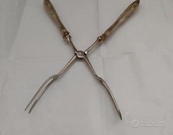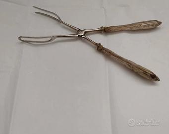 Nuove mai usate. Pinze vintage anni 50/60 da portata per alimenti, dolci, pane, salumi con manico in argento. Lunghezza totale 21 cm