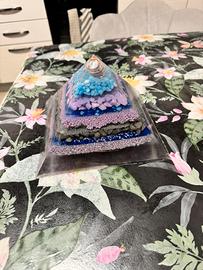 Vendo piramide di orgonite fatta da me. La piramide è perfettamente in scala proporzionata con la piramide di Cheope . All’interno della piramide ho inserito pietre di vario colore, sabbia fine colorata, un cristallo di calcedonio posizionato sulla punta e piccoli frammenti di rame più sul fondo la spirale di rame.