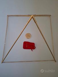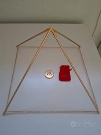 Piramide smontabile Zuccari con concentratore, base cm 40 in ottone placcato oro. Strumento per concentrare le energie e riversarle in ciò che si posiziona al centro della base della piramide, come ad esempio frutta e verdura oppure liquidi, ecc...