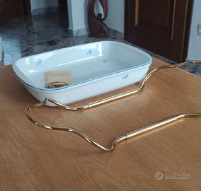 Servizio da Tavola in Ceramica Decorata – Vendo set da tavola in ceramica composto da: • 1 zuppiera con supporto/manici in ottone • 1 piatto ovale grande con supporto/manici in ottone • 1 teglia/pirofila rettangolare con supporto/manici in ottone Ogni pezzo è decorato con motivo delicato e armonioso, perfetto per chi ama lo stile classico o cerca un tocco retrò per la propria tavola. ✨ Condizioni: nuovo, mai usato e con confezioni originali. Le foto mostrano la bellezza e la cura dei dettagli. Eleganti e pratici, adatti per portare le pietanze cotte in forno direttamente in tavola. 🎁 anche Ideale per collezionisti, o come regalo originale.