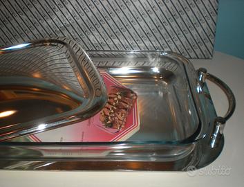 Pirofila per micronde con vassoio e coperchio rettangolare argentato dimensioni 35.4x22.4x4.4 cm 3L con confezione