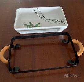 Pirofila in ceramica da forno 26 x16 e portapirofila in metallo con manici in legno