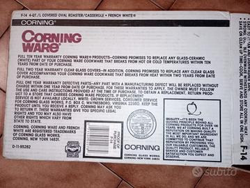 Pirofila da forno Corning Ware, modello French White, con coperchio in vetro. Ideale per arrosti e casseruole.