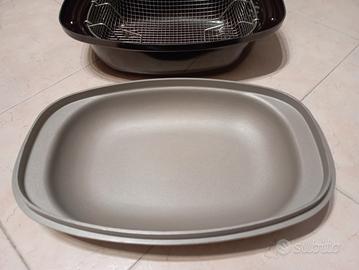 vendo pirofila da forno con griglia e coperchio,usata ma ancora in buono stato,misura cm 38 x 24 circa ritiro a mano no spedizione.