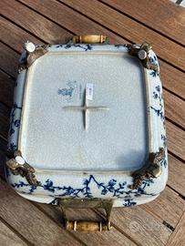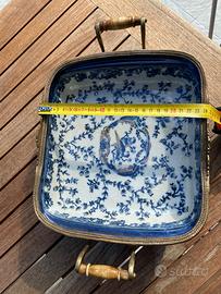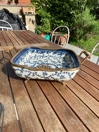 Pirofila da portata in porcellana inglese con piedini bordo in bronzo più avorio con pirofila da forno in vetro Royal Family mai usata