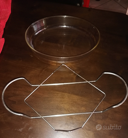 Pirofila Ovale in Vetro (anche forno)e supporto in Acciaio.