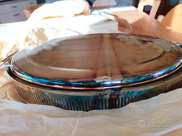 Elegante pirofila Fabbrica argenteria fiorentina con base in silver vetro borosilicato per alte temperature in forno certificato di garanzia lunghezza cm 35 larghezza 24 nuova