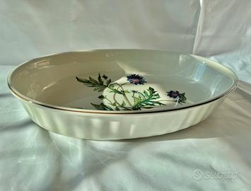 Grande pirofila ovale da forno Villeroy & Boch. Il prodotto fa parte della collezione Botanica, del rinomato produttore tedesco di ceramiche di lusso. La collezione è stata prodotta dal 1976 al 2008 nello stabilimento in Lussemburgo. Sulla superficie è raffigurato il fiore Knautia arvensis. La teglia è realizzata in materiale VilboFour e può essere utilizzata in microonde, forno e congelatore.