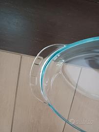 Pirofila ovale in vetro temperato con coperchio, che può essere usato come una seconda pirofila, di altezza minore.