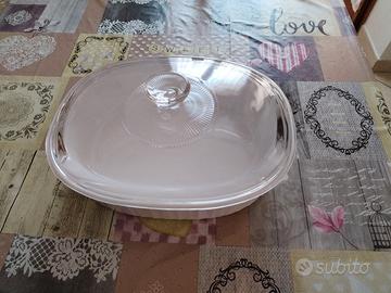 Pirofila Pirex in ceramica con coperchio in vetro.