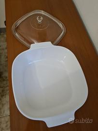 pirofila quadrata in ceramica con coperchio in vetro. misura interna 25 cm adatta a fuochi gas e elettrici oppure forno