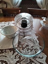 5 pirex con coperchio, cm26, cm20,cm16,cm13.5. Altro pirex completo ovale 30x21 h 14. Tortiera x ciambella cm 26. Stampo budino cm 17. 5 coperchi pirex da 20 a 30 cm Prezzo a partire da euro 3 con riduzione se acquisto di più pezzi o in toto