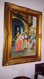bellissimo quadro pittura su tela con cornice in foglia oro. misura 130x90.