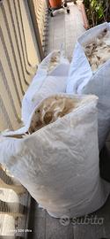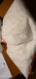 Vendo piuma d'oca riciclata (lavata e disinfettata in lavatrice ed asciugata in asciugatrice con appositi programmi) circa 4 kg, tre federe di 45 x 60x 23 cm circa.