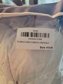 Pregiato tessuto fuori, 100% Cotone Sateen n.e. 80/80 TC395 Colore:Bianco –Trattamento:Idrofila. Sofficissimo piumino dentro, 100% Piumino Oca bianca Ungherese. Filling Power:800 CUIN Trapuntatura a quadri fissi. Vendo per errato acquisto, pagato 410€. Come nuovo.
