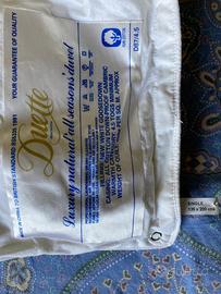 Piumino vergine d’ oca bianca per letto singolo. Marca Duette/Drifter. Misura: 200 cm x 135 cm; quattro stagioni in 2 strati separati con capacità atermica diversa , che si possono utilizzare separatamente o accoppiandoli con bottoni ed asole di cui sono dotati