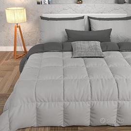 PREZZO PROMOZIONALE di fine stagione invernale...- 60% OFF ECCELLENTI IMBOTTITURE TERMICHE IN PIUMA D'OCA CON I PREZZI MIGLIORI SUL MERCATO.... VERO Piumino in Piuma d'Oca Naturale Vergine...Matrimoniale Invernale Double Face colori Nero/Grigio - Misura: 250 X 200 centimetri Composizione interna (90% Piuma - 10%Piumino) Categoria Punti Calore 4: (WARM) CALDISSIMO con 350 grammi/m2 di Piume d'Oca Naturale Vergine Imbottitura in Piuma d’Oca Naturale, opportunamente lavata e sterilizzata ad alte temperature in modo da renderla altamente anallergica e garantire quindi un elevato grado di igienicità. Tutte le piume utilizzate sono piume vergini e non rigenerate, in grado di offrire un alto grado di calore e mantenendo un peso complessivo decisamente contenuto: il prodotto giusto per le stagioni più fredde e per ambienti poco riscaldati. Imbottitura 100% Piuma d’Oca Naturale Vergine da 350 grammi /metroquadro, rivestito internamente in puro cotone antipiuma con cuciture a doppia battitura a quadri chiusi che evitano lo spostamento e la fuori uscita delle piume, garantendo così una distribuzione del calore uniforme su tutta l’estensione del piumino.....rivestimento super resistente anallergico e antiacaro!! Le varie colorazioni bicolore disponibili sono molto piacevoli anche per gli occhi, pertanto non è necessario usare un ulteriore copripiumino decorativo.....Puoi utilizzare il piumino dal lato color Nero o dal lato color Grigio indifferentemente a seconda delle esigenze cromatiche del tuo gusto personale.....così è come avere due piumini in uno!!! Il Piumone è nuovo, mai utilizzato, verrà inviato nella sua comoda sacca antipolvere e salvaspazio per riporlo durante i periodi di non utilizzo e per mantenere l'imbottitura omogenea e stabile. Scheda Tecnica: Misura: 250 X 200 centimetri Colori: Nero/Grigio Composizione interna: 90% Piuma - 10% Piumino Categoria Punti Calore 4: (WARM) Caldissimo con 350 grammi/m2 di piuma d'oca naturale vergine.