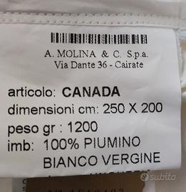 Vendo piumino d'oca Molina Canada MAI utilizzato.