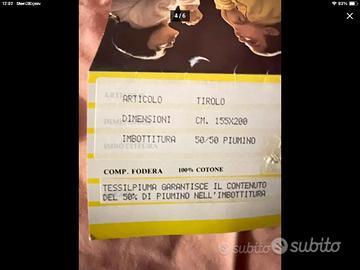 Vendo piumini d’oca certificati TESSILPIUMA Mod.Tirolo dimensioni 200x155 cm. praticamente nuovi. Prezzo 45€ l’uno