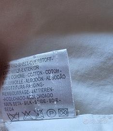 piumino imbottito in seta, misure 175 x 210 cm. , marca Eternauta, foderato in cotone 100%, peso kg 1,600, adatto alla mezza stagione