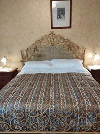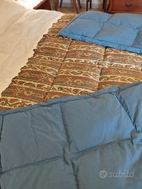 Piumino invernale con trapuntatura a quadri, imbottitura in piumetta d'oca. Tessuto esterno in rasatello di cotone 100% con elegante disegno Etro da un lato, cotone 100% tinta unita azzurro dall'altro. Misura grande, 270 x 260. Prezzo € 180.