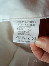Piumone per letto a due piazze, misure 2 m x 2 m Fodera esterna 65% poliestere, 35% cotone Imbottitura 90% piume, 10% piumino. Copripiumone azzurro in omaggio. Vendo perché ho cambiato dimensioni del letto.