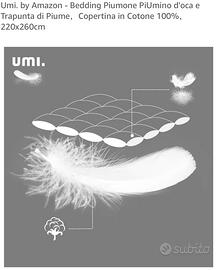Come nuovo (usato una settimana). Piuma d’oca dentro e rivestimento in cotone (specifiche nelle foto). Pagato 78 euro. Lavabile in lavatrice.